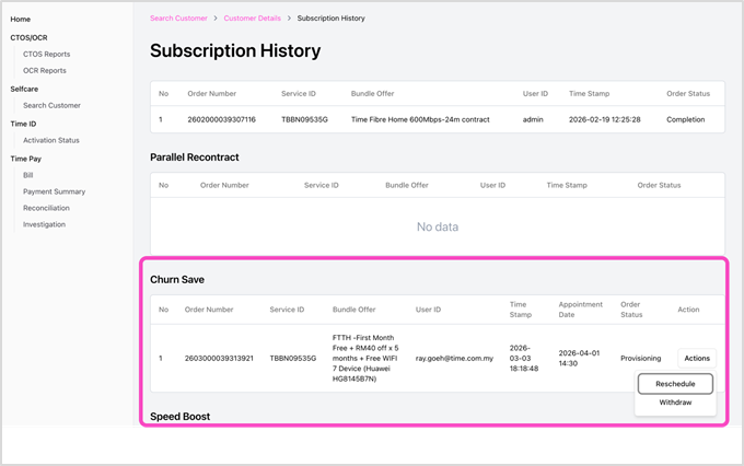 Only churn promos involving device installation can be withdrawn using the Withdraw button.
